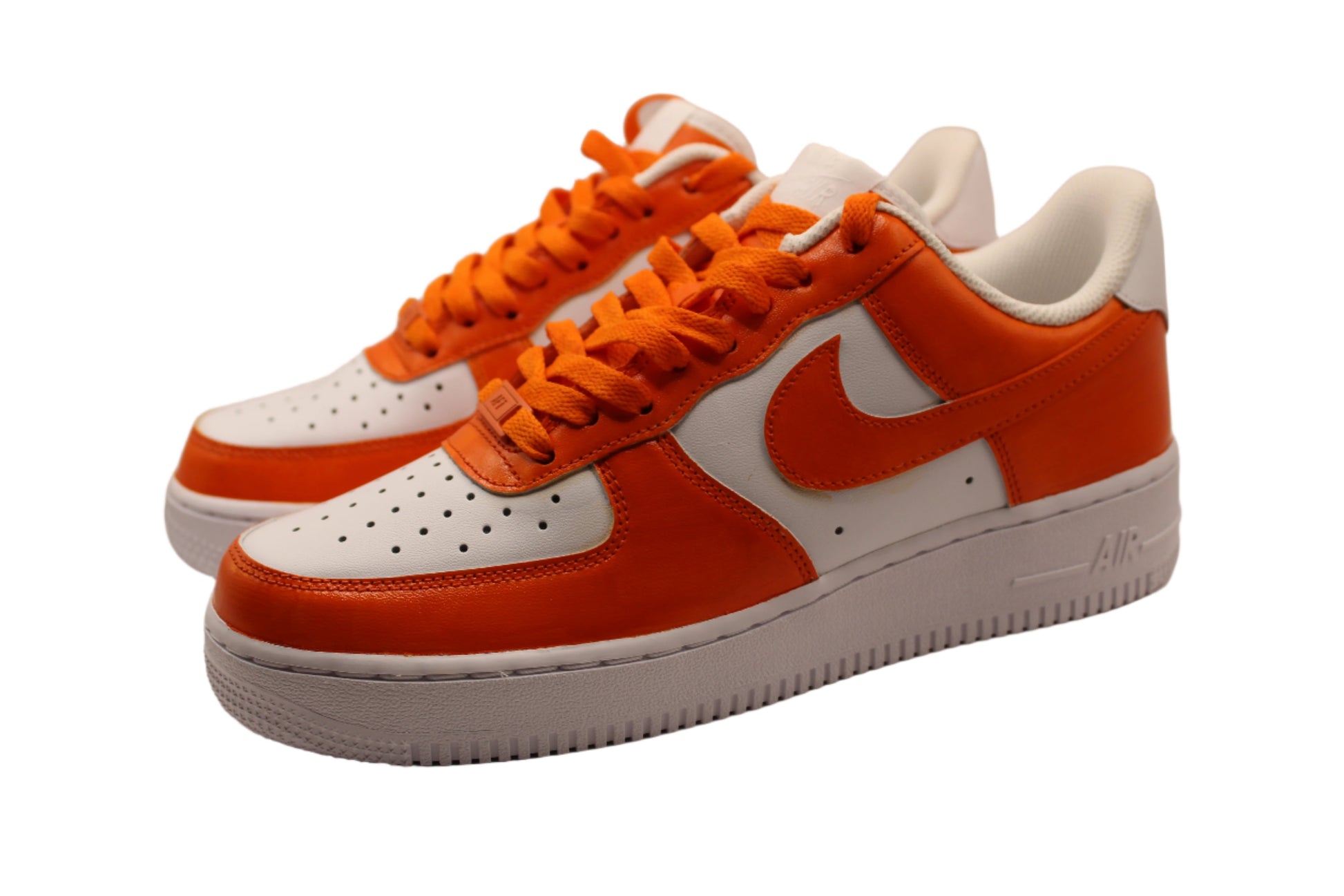 Elevate your sneaker game with these custom orange Nike Air Force 1s. Perfectly blending bold orange accents with a clean white base, these custom sneakers are a vibrant statement piece for any sneaker enthusiast. Crafted with precision and high-quality leather, each pair is hand-painted.